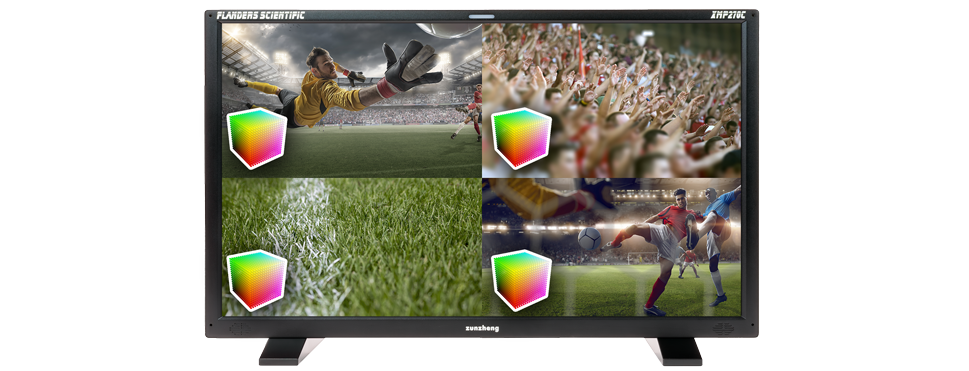 Perfect for multi-view control room applications each input can optionally be configured with completely independent color space parameters and these can all be viewed on screen at the same time. Select different gamuts, EOTFs, white points, and luminance parameters for the ultimate level of per input configuration flexibility. Prefer to keep things simple with a single global setting for all inputs? No problem, the monitor allows you to use it that way as well.
